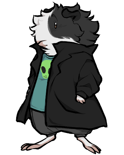 Caby returning here, to talk about little old Torrone from a less,,,, silly perspective. Torrone Morbido is one of four guinea pig characters that populate this site, one who was created back on my original host, with plans to use him to host a section on aliens, a plan that never came to fruition. I designed him while on holiday in a caravan in the summer of 2018, he's an offwhite, bicolour sheba mini yak, and his design has remained consistent since then. His name, some sort of italian nougat, was suggested by this very cool person.